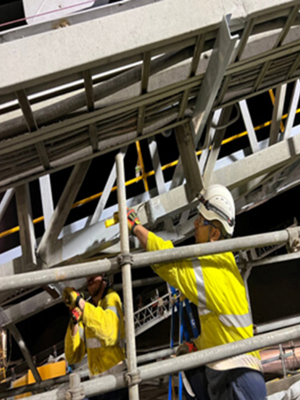 Once the new conveyor sections were in place, the team proceeded to weld the conveyor stringers, followed by non-destructive testing (NDT) to ensure the integrity of the welds. After this, the grating was installed and securely fastened to the newly welded sections. Once all components were in place and thoroughly checked, the temporary works were removed, and the area was restored to full operational functionality.