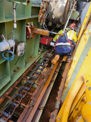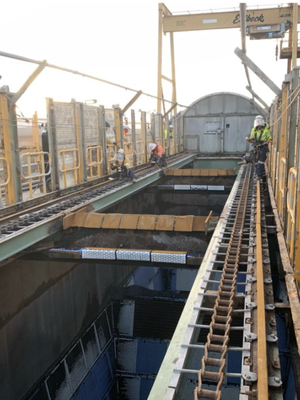 We successfully completed the CV4 shuttle replacement at the Boddington site for Newmont. The scope of work included the replacement of shuttle rails over bins and the shuttle sweeps. The project was complex and required careful planning and execution across multiple shifts. Our team worked around various challenges, including weather delays and high winds, to maintain project momentum. The work began with scoping the site and completing necessary documentation, followed by the removal of old rails, grease lines, and hold-down bolts. The shuttle drive module was successfully lifted and replaced with minimal disruption to the plant’s operations.